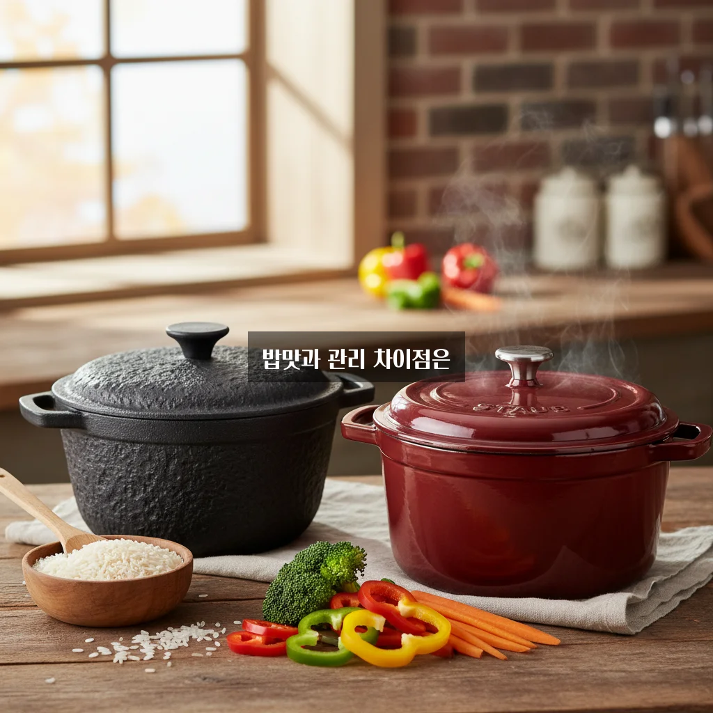 📸 버미큘라 vs 스타우브: 무쇠 주물 냄비 밥맛 및 관리 난이도 관련 이미지